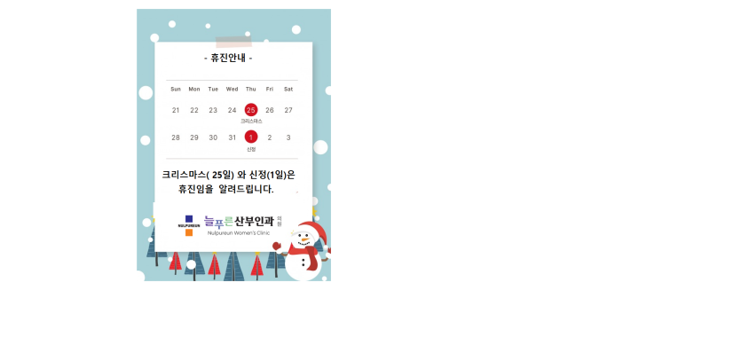 성탄절 (25일) 과 신정( 1일) 은 휴진임을 알려 드립니다.