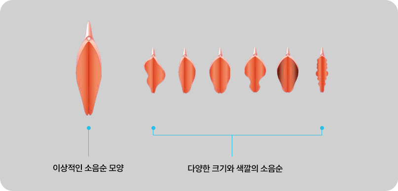 소음순 모양은 개인마다 차이가 있고, 후천적인 자극에 의해 변형되기도 합니다.