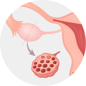 난소에 정상적으로 배란되지 못한 1mm 이하의 난포들이 여러 개 쌓여있게 됩니다.